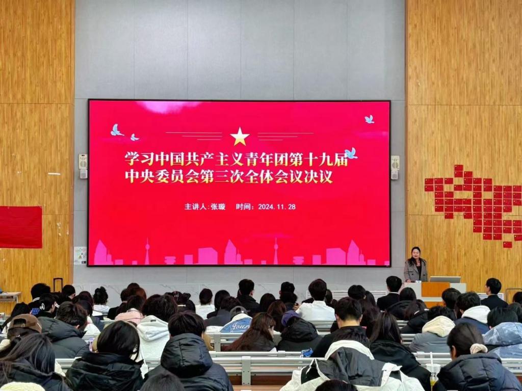 为深入贯彻落实中国共产主义青年团第十九届中央委员会第三次全体会议精神,引导广大团员青年坚定理想信念,勇挑时代重担,william威廉中文官网积极组织开展专题团课学习活动,2024年11月28日,william威廉中文官网在增信楼113举行以学习中国共产主义青年团第十九届中央委员会第三次全体会议决议为主题的团课。