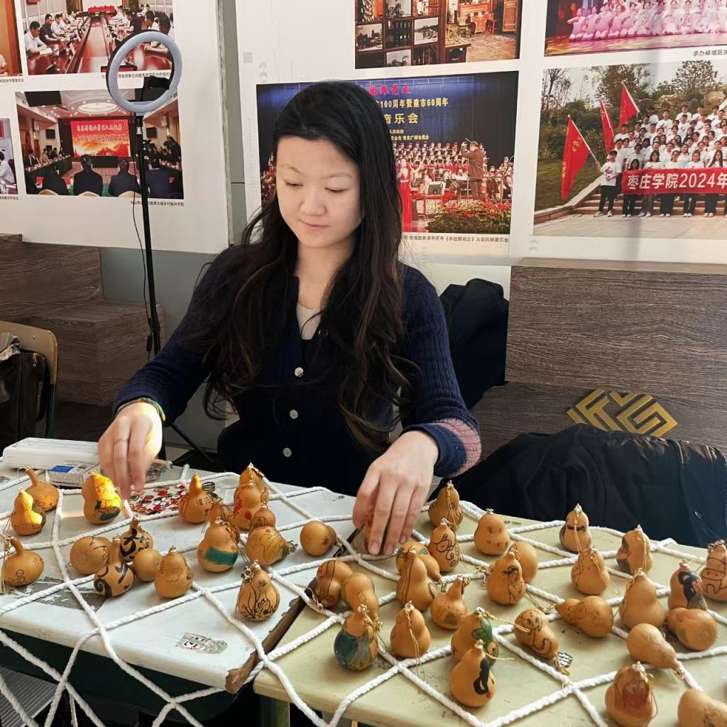 活动现场,协会成员热情地为师生介绍产品的设计理念和制作过程。不少同学表示,文创葫芦烙画和玉石珍珠手串等不仅是一件艺术品,更是一份承载文化情感的礼物。购买者纷纷表示,这些我校大学生自己手工创作的文创产品既能装点生活,也能作为送给亲朋好友的特别心意。