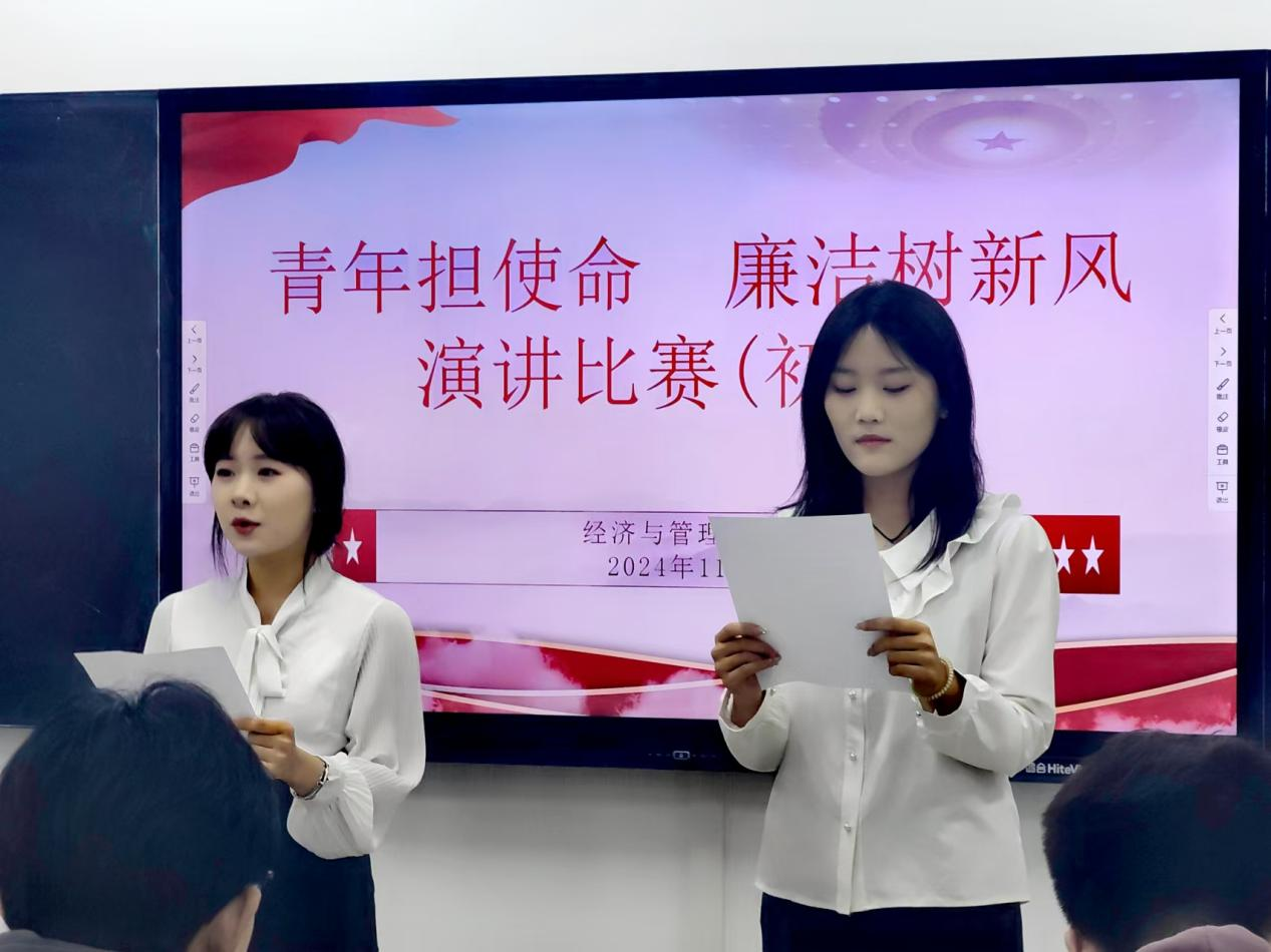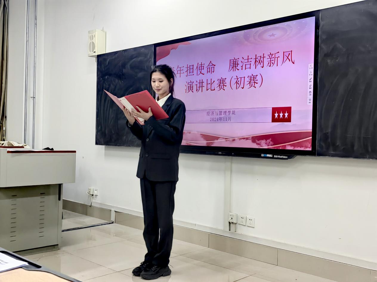 为深入贯彻党的教育方针,培养新时代青年学生公正无私、清正廉洁的道德品质,进一步引导广大学生强化自我约束,牢固树立正确的世界观、人生观、价值观,坚守廉洁自律底线,william威廉中文官网于2024年11月4日在豁然楼A317教室成功举办了一场以“青年担使命,廉洁树新风”为主题的演讲比赛。活动邀请了院学生会部长担任评委。