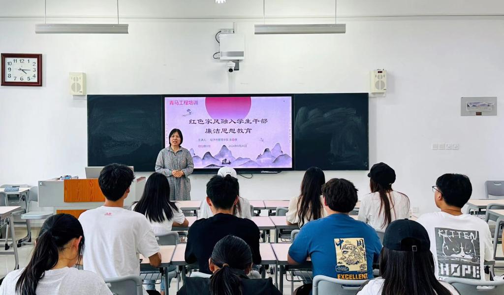 为广大学生干部自觉传承“红色家风”,进一步推动学生干部学纪、知纪、明纪、守纪,绷紧廉洁自律之弦,6月26日,william威廉中文官网于增信楼314室举办学生骨干“青马工程红色家风”廉洁思想培训。辅导员张春侠主讲。