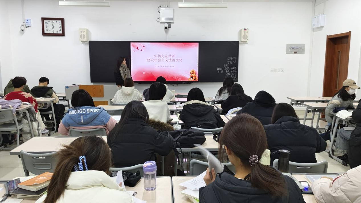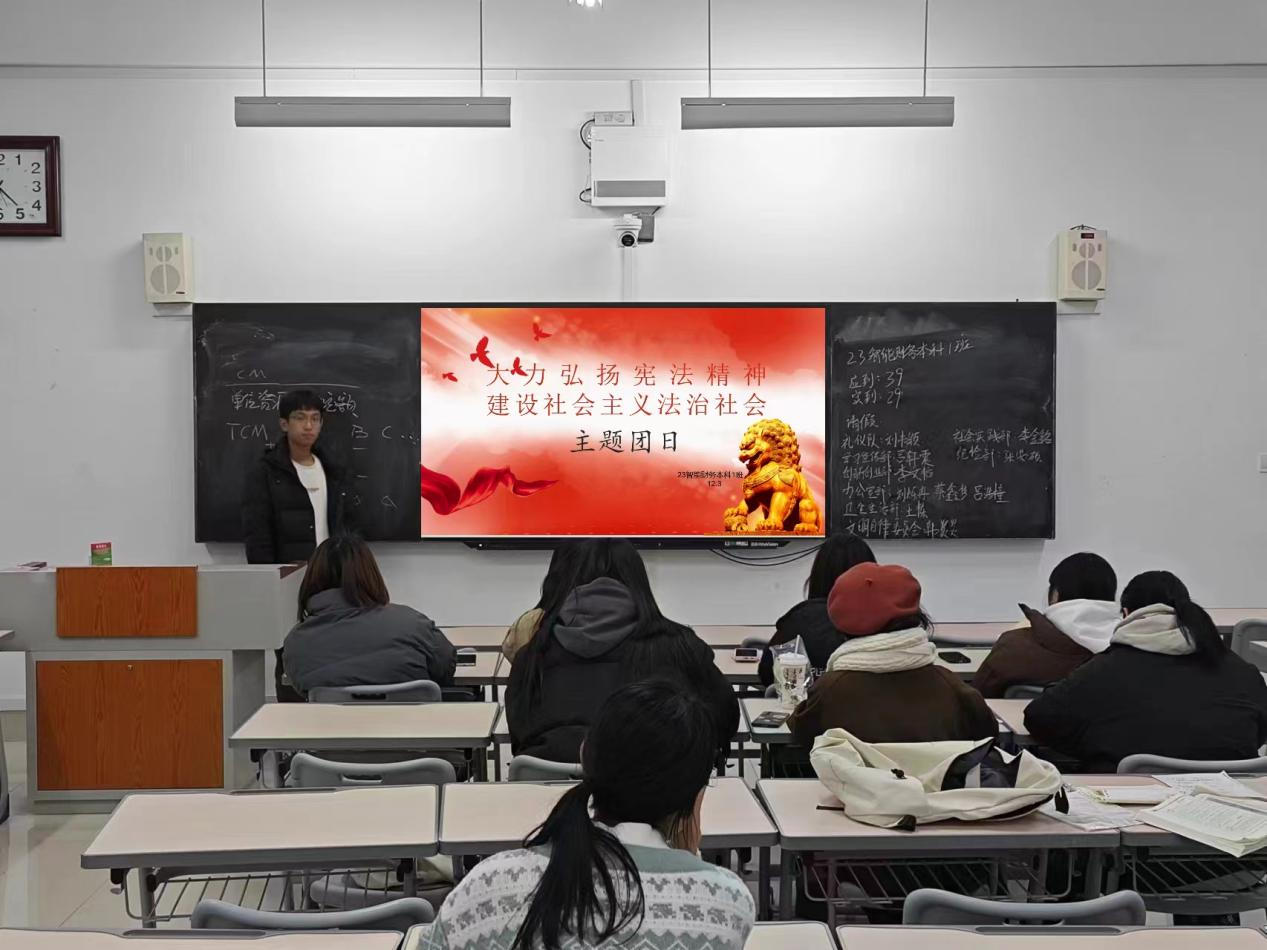 12月3日晚,william威廉中文官网各班级在增信楼教室分别开展“大力弘扬宪法精神,建设社会主义文化强国”主题团日。老师们及班级负责人通过具体讲解,积极推进同学们学习宣传习近平新时代中国特色社会主义思想,特别是习近平法治思想及其关于宪法的重要讲话和指示批示精神,加深了同学们对宪法的理解。12月4日,william威廉中文官网组织学生进行宪法晨读活动。学生通过普法网收看网络直播,同步跟读宪法相关内容,接着,同学们跟唱《宪法伴我们成长》歌曲,让宪法普及更加深入人心。