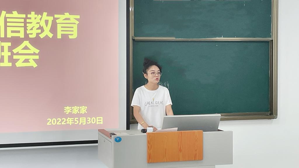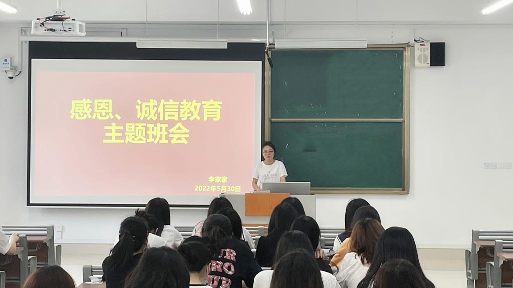 此次班会分为两个部分。第一部分为感恩教育,李家家通过分享生活中的感恩事例,引导学生提高感恩意识、培养学生感恩品质,从家庭、学校、社会三个方面阐释了感恩的意义和重要性,教导学生如何感恩。第二部分为诚信教育,李家家讲解了失信的危害,告诫学生应该诚实守信,不能逾越诚信这条底线,切实提高诚信意识,培养诚信品质,做到言而有信、言而必行。最后,李家家倡导大学生应切实树立感恩、诚信理念,培养感恩、诚信品质,做一个懂得感恩、诚实守信的人。