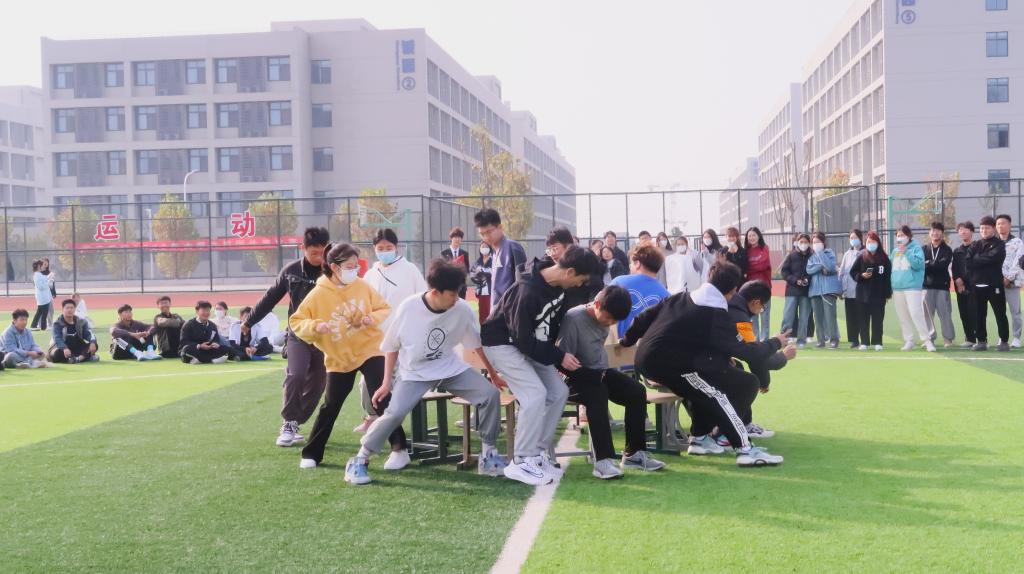 伴随着习习秋风,抢凳子游戏拉开了活动的帷幕,学生们围着凳子绕圈,听到“抢”的口令时迅速找到凳子坐下,六轮比赛后各有一名学生胜出,鼓掌声、欢笑声不绝于耳。活动如火如荼地进行着,找零钱,接力赛跑,跳大绳,三人四足考验着选手的团结与合作能力,展现了选手的激情与活力。最后的打鸭子使运动会达到了高潮,小组两两对决十分精彩。体育场上,不管是观众还是选手的兴致都十分高涨,为疫情防疫下的校园增添了活力。