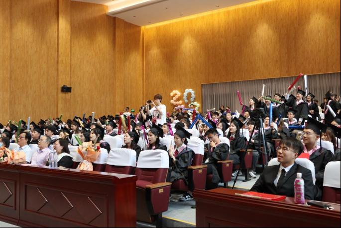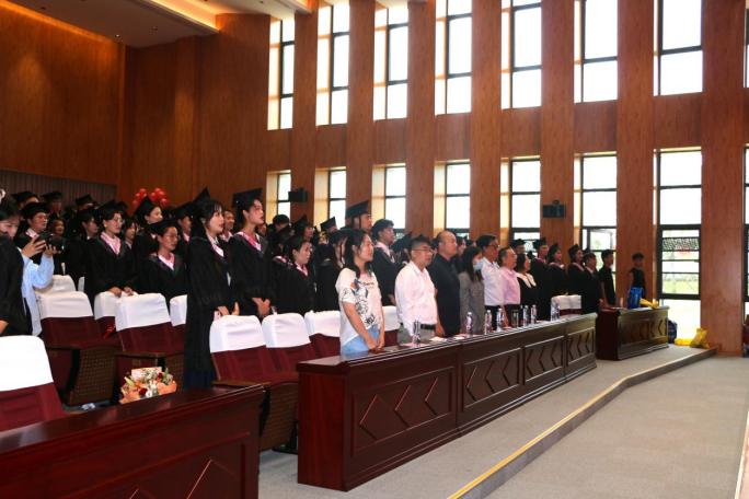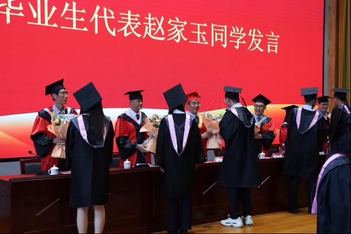 谢金萍隆重介绍了与会的各位领导、嘉宾和老师,并代表学院向2023届毕业生致以最诚挚的祝贺。在同学们的热烈掌声中,杨位留宣读了学士学位授予决定,安涛为毕业生一一拨穗并授予学士学位证书,为他们送上毕业祝福并合影留念。
