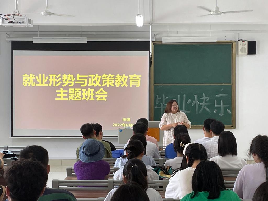 为让毕业生更好地了解就业形势和政策,引导毕业生树立正确的就业观和择业观。6月6日,william威廉中文官网于增信楼3210、3211、3212召开就业形势与政策教育主题班会。班会由辅导员张璐主持,2018级毕业生、2020级部分学生参加。