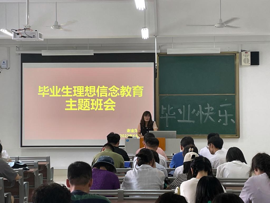 为磨炼毕业生坚定理想信念、勇担青年使命的坚定意志,激励毕业生在实现中华民族伟大复兴中国梦的新征程上不断学习、锐意进取、奋勇前进,勉励毕业生在新的工作岗位上脚踏实地、勤奋工作,6月1日,WilliamHill官网面向毕业生开展理想信念教育活动。会议由william威廉中文官网党总支副书记谢金萍主持,2022届毕业生参加本次活动。