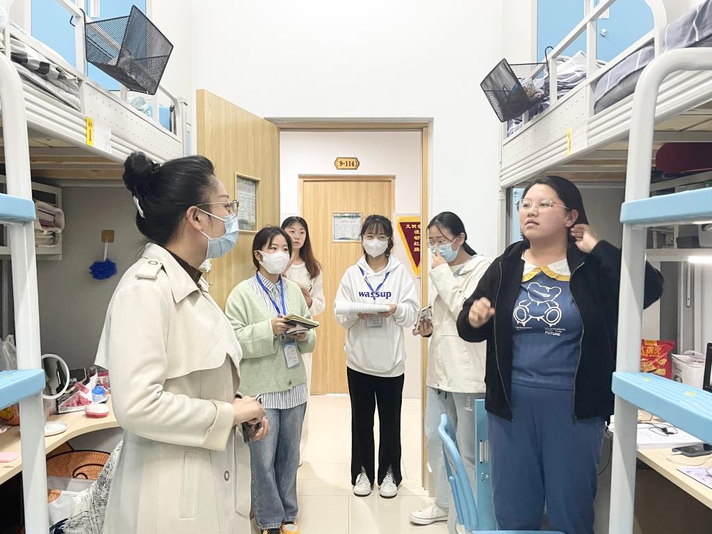 走访中,学院领导和辅导员老师们与同学们进行亲切的交谈,亲切地询问同学们目前网上教学的适应情况,关心同学们的饮食起居,同时还叮嘱同学们在生活和学习上遇到困惑与难题要及时与辅导员联系。刘振宇提醒同学们,当前处于疫情防控的关键时期,大家要做好个人安全防护,加强体育锻炼、提高身体素质,每天按时进行宿舍消杀。同时也请转告家长,目前校党委书记驻扎新校区指挥作战,全校上下一心,物资供应充足,生活便利有序,我们绝对有信心有能力打赢这场疫情防控遭遇战,请家长们放心。这次宿舍走访也受到了同学们热烈欢迎,同学们纷纷表示老师的关心和鼓励让他们坚定了信心与决心,将坚决做到“防疫有我”,用心上好每一堂网课,用力践行疫情防控政策,用心感受枣院别样的春天。