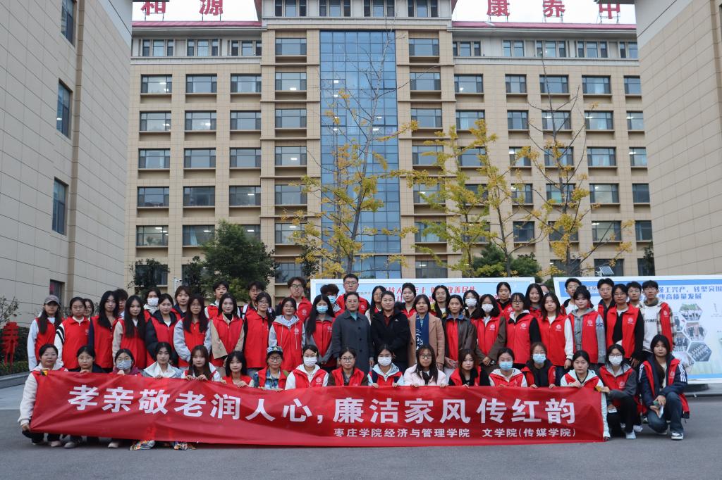 为进一步弘扬中华民族尊老、敬老、爱老的良好风尚,在重阳节来临之际,枣庄学院william威廉中文官网与文学院(传媒学院)共同举办了以“孝老敬亲润人心,廉洁家风传红韵”为主题的重阳节慰问活动。10月29日下午,师生志愿者们前往枣庄市“亲河源”康养中心,为近百名老人送去了节日的问候与真挚的关怀。