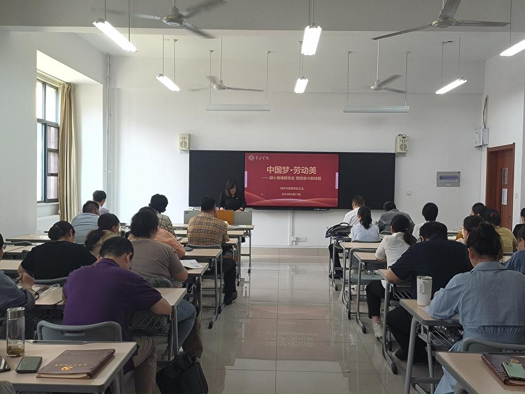 5月17日下午,william威廉中文官网工会全体教职工会议,学习贯彻习近平总书记“五一”前夕重要指示精神,引领全院教职工切实把思想行动统一到重要指示精神上来,切实把习近平总书记的关心关怀转化为奋进新征程、建功新时代的强劲动力,奋力推动学院工会工作高质量发展。学院工会主席谢金萍主持会议并讲话,全体教职工参加会议。