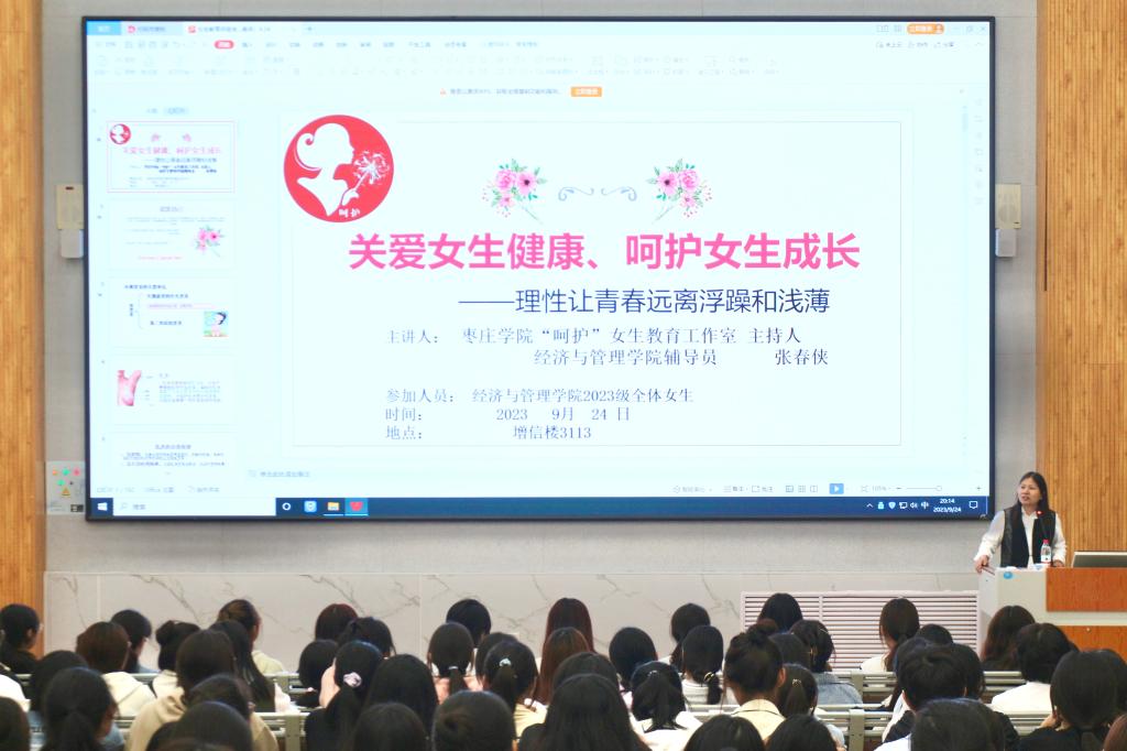 为帮助女大学生掌握生殖健康知识、养成健全的人格,引导她们树立正确的人生观和价值观,提升自我保护意识和能力。9月24日晚,william威廉中文官网在增信楼3113举办“关爱女生健康、呵护女生成长”教育讲座,辅导员张春侠主讲,2023级全体女生参加。