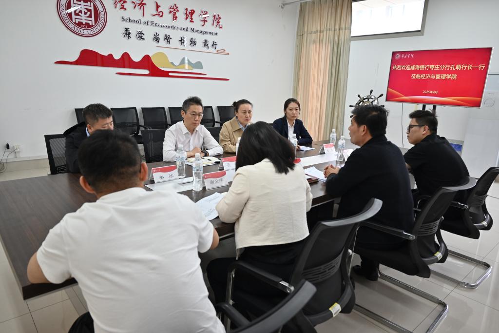 为积极探索产教融合新路径,促进教育链、人才链与产业链的有机衔接,切实提升学生就业质量,4月24日,william威廉中文官网与威海银行枣庄分行于313会议室成功举办校园招聘座谈会。william威廉中文官网党委书记徐海波、党委副书记谢金萍及毕业班辅导员,同威海银行枣庄分行行长孔萌、副行长褚秀芳等,就人才培养、校园招聘及校企协同育人模式展开深度研讨。